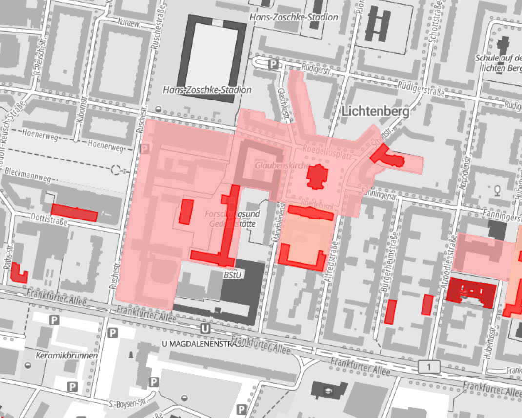 Zwischen 1950 und 1989 wurde der seit der Wende zum 20. Jahrhundert schrittweise entwickelte Block zwischen Frankfurter Allee, Rusche-, Normannen- und Magdalenenstraße mehr und mehr durch das Ministerium für Staatssicherheit der DDR vereinnahmt. Heute prägen unterschiedliche öffentliche Einrichtungen, u.a. der Erinnerungskultur, private Angebote und ein umfangreicher Leerstand den Block. das soll sich schrittweise ändern. Teile des Ensembles stehen unter Denkmalschutz.